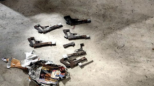 बोकारो में गांधीनगर थाना क्षेत्र के जरीडीह बाजार के कलाली रोड स्थित कावेरी मैरिज पैलेस एवं उसके सामने स्थित गोदाम से कोलकाता एसटीएफ, झारखंड एटीएस, बेरमो थाना और गांधीनगर थाना के संयुक्त टीम ने छापेमारी की. इस कार्रवाई में गन फैक्ट्री सहित हथियार निर्माण का मटेरियल बरामद किया है. ये मैरेज हॉल व गोदाम सूरज साव का बताया जाता है, ये अवैध काम मैरेज पैलेस की आड़ में रिहायशी इलाके में चल रहा था. यहां इस दौरान नामी इंग्लिश ब्रांड कंपनी का अवैध शराब निर्माण भी किया जाता था जो कि भारी मात्रा में छापामारी के दौरान बरामद हुआ है. मिली जानकारी के अनुसार हथियार निर्माण के बाद बंगाल होते हुए बांग्लादेश भेजा जाता था. ये मिनी गन फैक्ट्री बहुत दिनों से चल रहा था. कोलकाता एसटीएफ को पूर्व से जानकारी मिल रही थी कि यहां अवैध गन फैक्ट्री संचालित हो रहा है. पिछले दिनों धनबाद के महुदा से भी कोलकाता एसटीएफ की सूचना पर एक मिनी गन फैक्ट्री का उद्भेदन किया गया था. कोलकाता एसटीएफ के सब इंस्पेक्टर सप्त ऋषि बोस ने अनऑफिशियल बताया कि छह बना हुआ पिस्टल, 18 अर्धनिर्मित पिस्टल और करीब 6 पीस बैरल बनाने का सामान जब्त किया गया है. वहीं काफी मात्रा में है अवैध शराब एवं बियर पैक करने वाला खाली डब्बा रैपर भी जब्त किया गया है.वहीं इस मैरेज हॉल और गोदाम का मुख्य सरगना सूरज साव भाग गया है. मैरेज हॉल से हथियार बनाने वाले दो लोगों को गिरफ्तार किया गया है. एक बिहार के मुंगेर और एक खगड़िया जिला का रहने वाला है. इस छापेमारी में उपस्थित एसटीएफ के पुलिसकर्मी और वहां पर उपस्थित बेरमो थाना प्रभारी सही इंस्पेक्टर रोहित कुमार सिंह ने कुछ भी करने से इनकार कर दिया. सिर्फ इतना बताया कि प्रेस कॉन्फ्रेंस के बाद में इसकी तमाम जानकारी दी जाएगी.