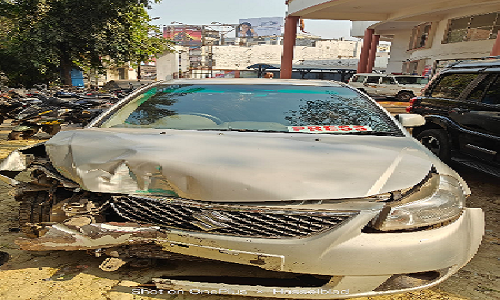 तेज रफ्तार स्विफ्ट डिजायर कार दुर्घटनाग्रस्त,तीन लोग फरार