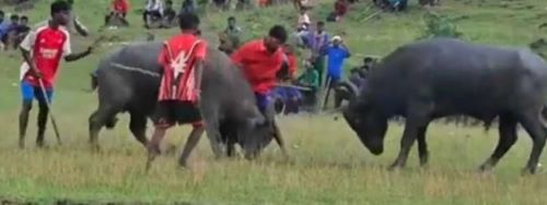 जमशेदपुर : पूर्वी सिंहभूम जिले के बोड़ाम थाना क्षेत्र की बेलडीह पंचायत के जोबा गांव में मकर संक्रांति के उपलक्ष्य में आयोजित काड़ा (भैंसा) लड़ाई प्रतियोगिता त्रासदी में बदल गई। मैदान में दो ताकतवर भैंसों की भिड़ंत के दौरान एक उग्र भैंसा अनियंत्रित होकर दर्शक दीर्घा की ओर दौड़ पड़ा। भागने की आपाधापी में भैंसे ने सुभाष कर्मकार को सींगों पर उठाकर जमीन पर पटक दिया। वहीं, पुत्र सागर कर्मकार को बुरी तरह रौंद दिया। एमजीएम अस्पताल में इलाज के दौरान पिता की मौत हो गई। वहीं आनन-फानन में सुभाष कर्मकार को एमजीएम अस्पताल ले जाया गया। वहां चिकित्सकों ने सुभाष कर्मकार को मृत घोषित कर दिया। वहीं, सागर के पैर की हड्डी टूट गई है और वह गंभीर हालत में अस्पताल में भर्ती है। त्योहार के दिन हुई इस घटना से कर्मकार परिवार में कोहराम मच गया है। बोड़ाम पुलिस दलबल के साथ मौके पर पहुंची और सख्ती दिखाते हुए मेला बंद करवाया। पुलिस ने शव का पोस्टमार्टम कराकर परिजनों को सौंपा।