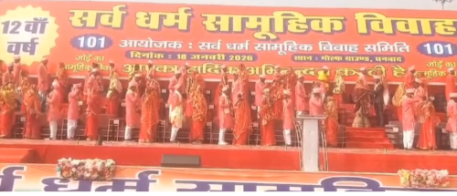 : धनबाद के रणधीर वर्मा स्टेडियम गोल्फ ग्राउंड में आज सर्वधर्म सामूहिक विवाह कार्यक्रम का भव्य आयोजन किया गया। इस अवसर पर कुल 101 जोड़ों का एक साथ सामूहिक विवाह संपन्न हुआ। कार्यक्रम में सभी धर्मों के जोड़ों ने बिना दहेज विवाह कर सामाजिक एकता और समरसता का संदेश दिया। विवाह से पूर्व सभी 101 दूल्हों की टोटो पर भव्य बारात निकाली गई। बारात में बराती ढोल-नगाड़ों की धुन पर नाचते-गाते हुए और आतिशबाजी करते हुए विवाह स्थल तक पहुंचे। विवाह स्थल पर समधी मिलन के बाद सभी जोड़ों का एक साथ सामूहिक बरनाला संपन्न कराया गया, जिसके बाद विधि-विधान से विवाह की रस्में पूरी की गईं। इस सर्वधर्म सामूहिक विवाह की खास बात यह रही कि यह पूरी तरह दहेज रहित रहा। आयोजन समिति की ओर से सभी दूल्हा-दुल्हन को गृहस्थी का पूरा सामान प्रदान किया गया, ताकि वे नए जीवन की शुरुआत आत्मसम्मान और सुविधा के साथ कर सकें।आयोजन समिति ने इस कार्यक्रम के माध्यम से समाज को यह संदेश देने का प्रयास किया कि बिना दहेज के भी विवाह धूमधाम से और सम्मानपूर्वक किया जा सकता है। कार्यक्रम में बड़ी संख्या में लोग मौजूद रहे और सभी ने इस पहल की सराहना करते हुए इसे समाज के लिए प्रेरणादायक बताया।