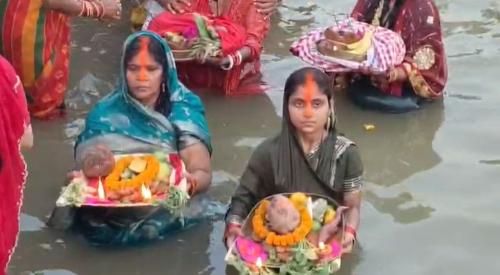 नदी में डूबते सूर्य के अर्घ्य के साथ छठ पर्व के तीसरे दिन का अनुष्ठान हुआ पूरा