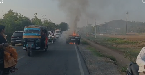 चलती स्कॉर्पियो में लगी आग, धुं-धुं कर जली स्कॉर्पियो, महाप्रबंधक सहित तीन लोग बाल बाल बचे..