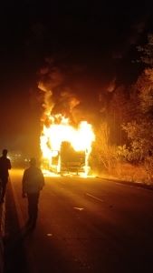 टाटा से भुवनेश्वर जा रही एसी बस में लगी आग,बाल- बाल बचे 50 यात्री