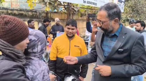 рд╕рдбрд╝рдХ рд╕реБрд░рдХреНрд╖рд╛ рдорд╛рд╣; рдЯреЙрдлреА рдмрд╛рдБрдЯрдХрд░ рд╣реЗрд▓рдореЗрдЯ рдкрд╣рдирдиреЗ рдХреЗ рд▓рд┐рдП рд▓реЛрдЧреЛ рдХреЛ рдХрд┐рдпрд╛ рдЧрдпрд╛ рдЬрд╛рдЧрд░реВрдХ
