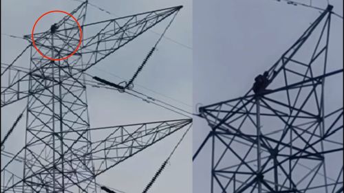 सिरफिरे व्यक्ति ने बिजली के ऊंचे टावर पर चढ़ा, करीब 8 घंटे बाद...