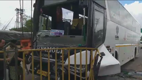 ओवरटेक करने के चक्कर में, दो बसों में हुई टक्कर